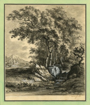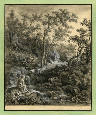 Wooded landscape with a Shepherd sitting at the Stream - Edge of a Wood with a Stream