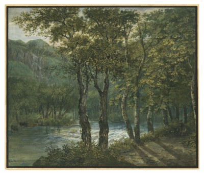 Watercolor. Signed and dated A Calame 1850. 335 x 456 mm. -