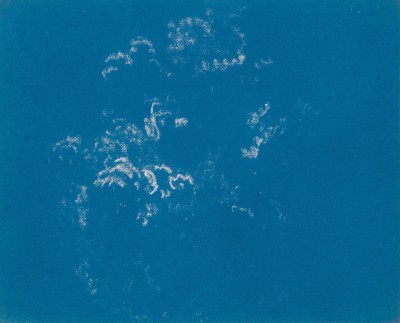 White chalk on blue prepared paper.