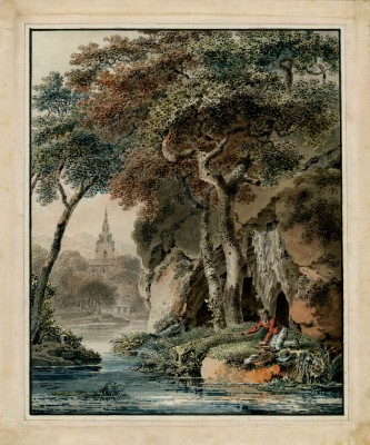 watercolor over pen and ink with traces of pencil on laid paper; 305 x 473 mm (12 x 18 5/8 inches)